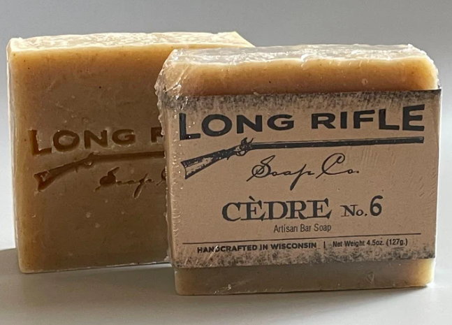 Cedre N. 6 (1776): A slightly menthol blend of fresh cigar leaf, mahogany, and cedarwood. Made with locally sourced tallow and unrefined shea butter to create an awesome bar of soap.