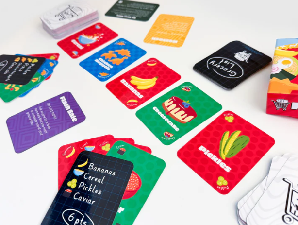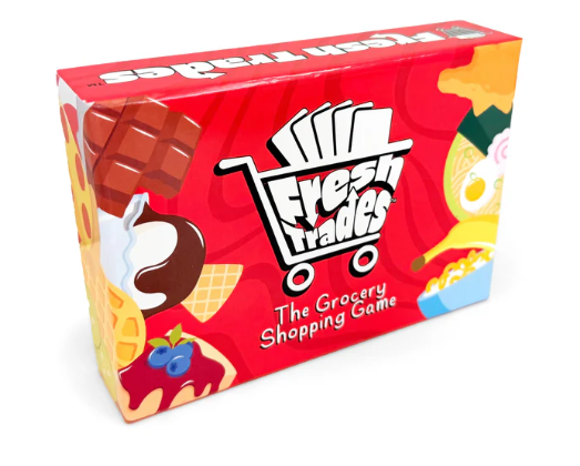 Fresh Trades is a light strategy card game where players gather food item cards to complete their grocery lists for points. With a rotating conveyor belt of cards, the selection is always fresh! But watch out––another player might send you on restock duty.
